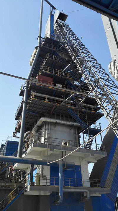 ◆ 吸氣梁至上層燒嘴梁之間為預(yù)熱帶,利用高溫煅燒后的窯氣預(yù)熱石灰石。